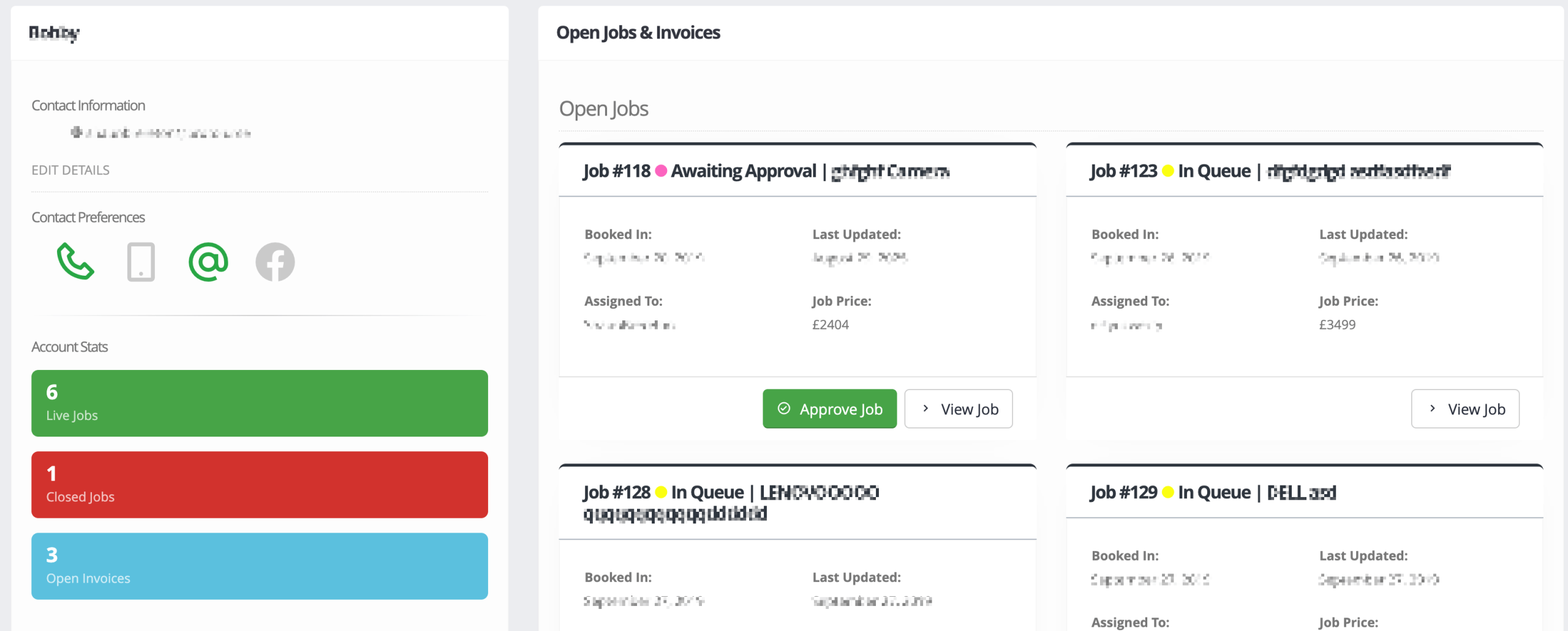Allow your customers to track repairs in real time, without taking up your staff's time. Our customer portal allows for live job tracking, ability to approve jobs, reply to comments and download invoices and soon, pay for the repair all online.