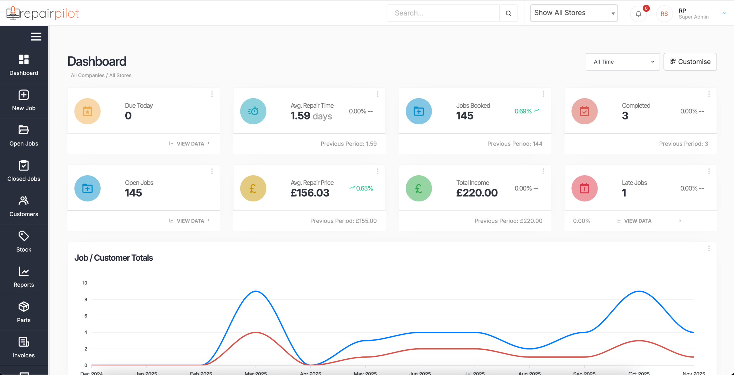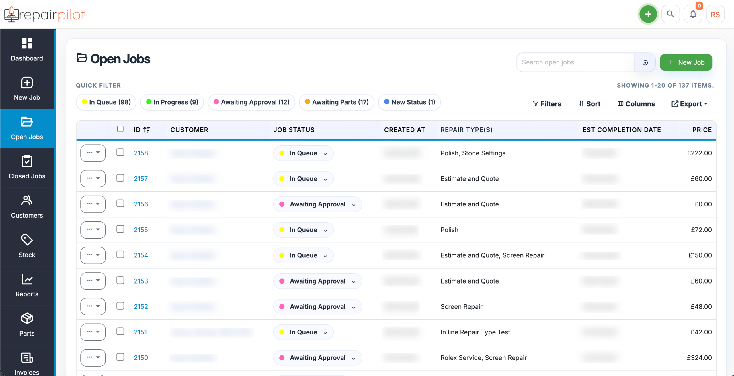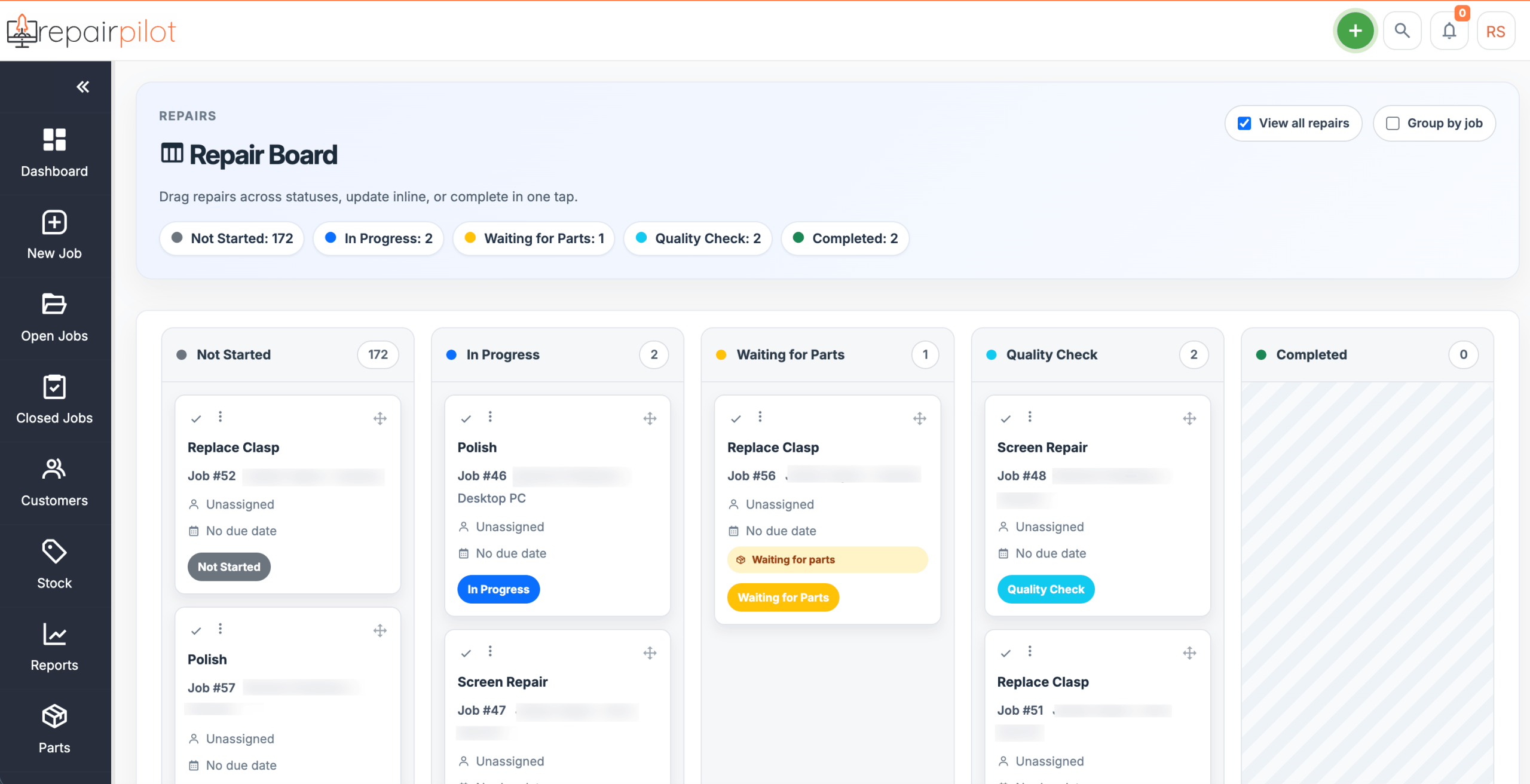 Repair Pilot allows your staff to spend more time repairing and less time dealing with customers. Job sheets, granular job assignments and the customer portal all help with making your repair business more efficient.