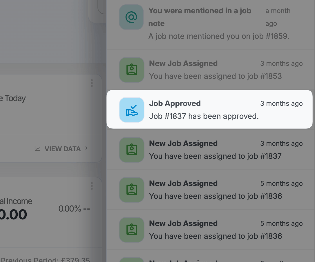 - Get notified when a customer approves a job