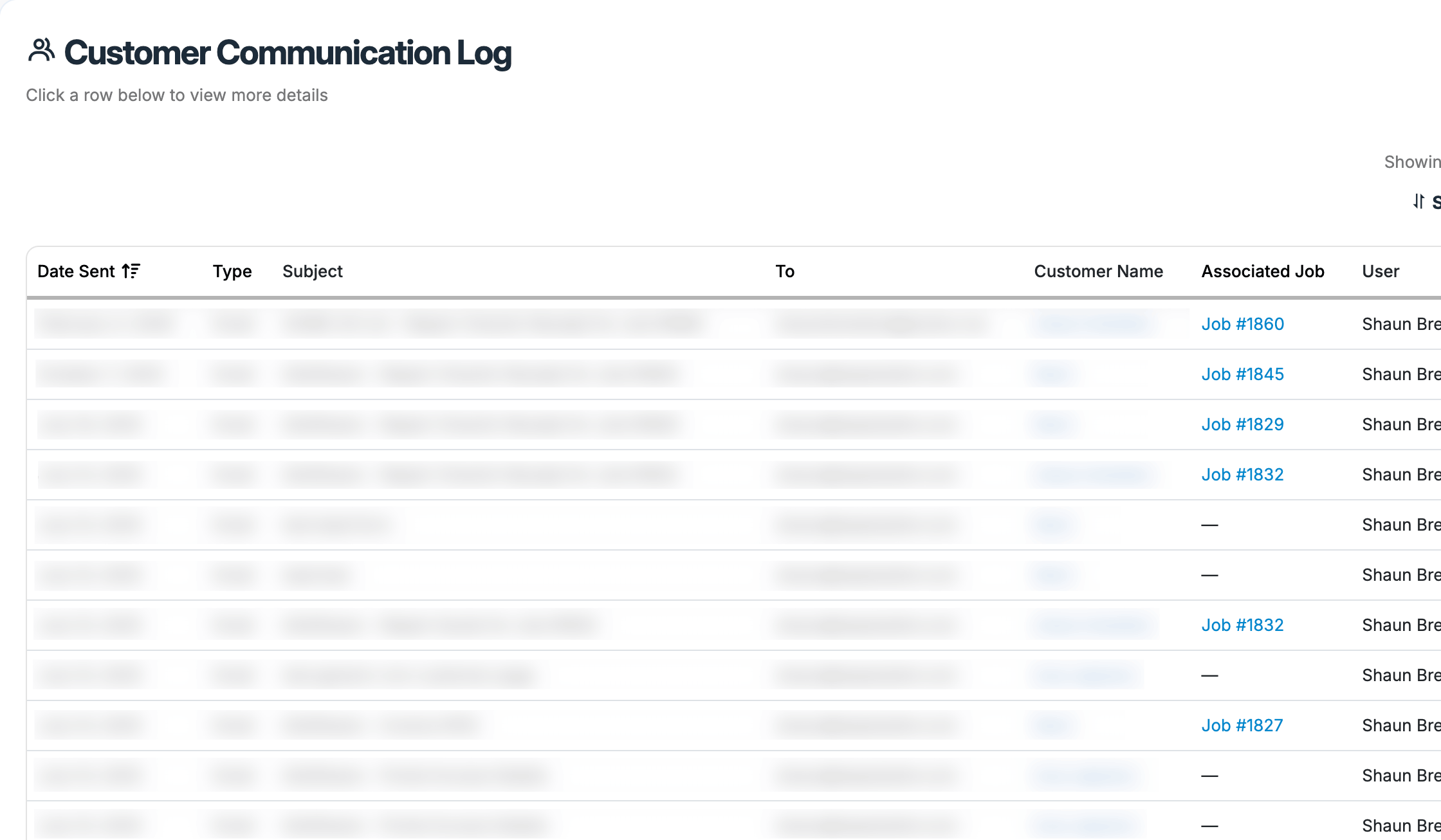 View a full log of automated messages per job or customer