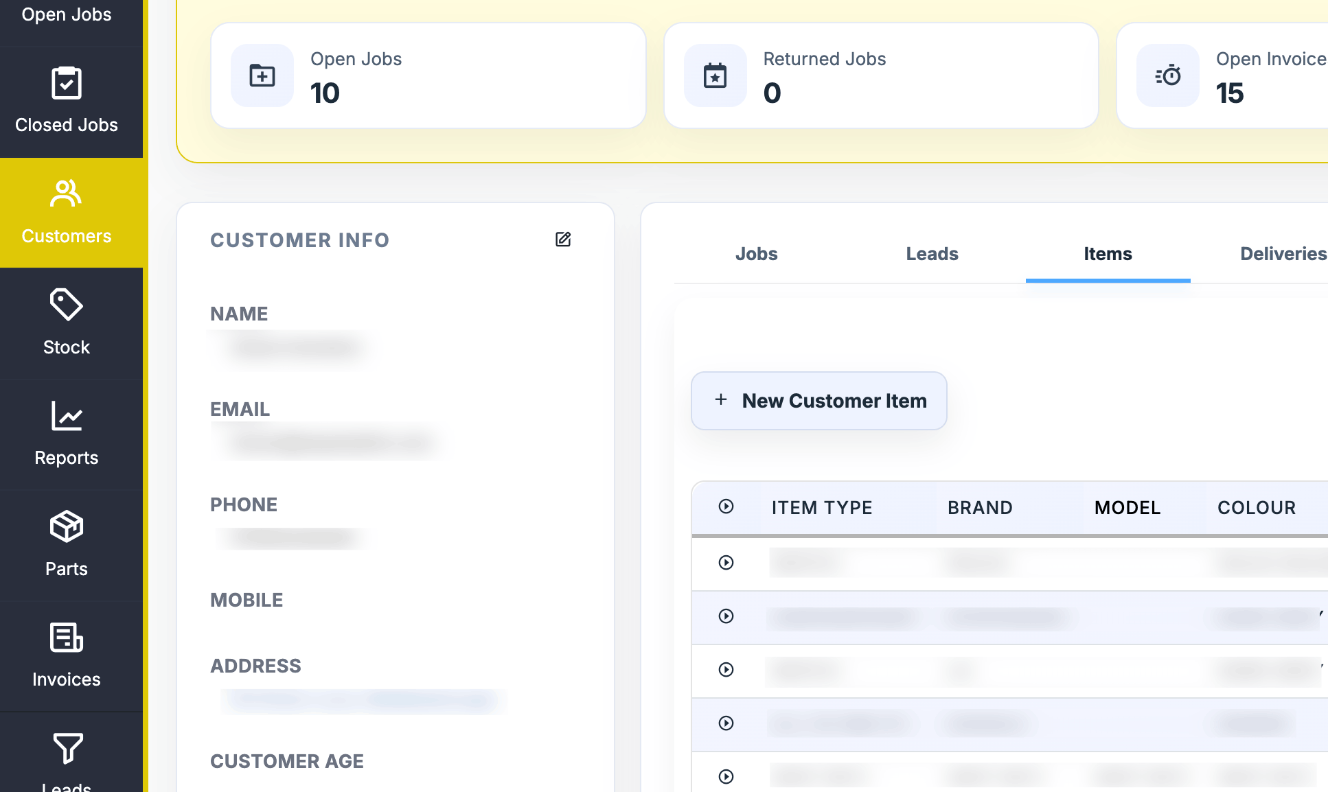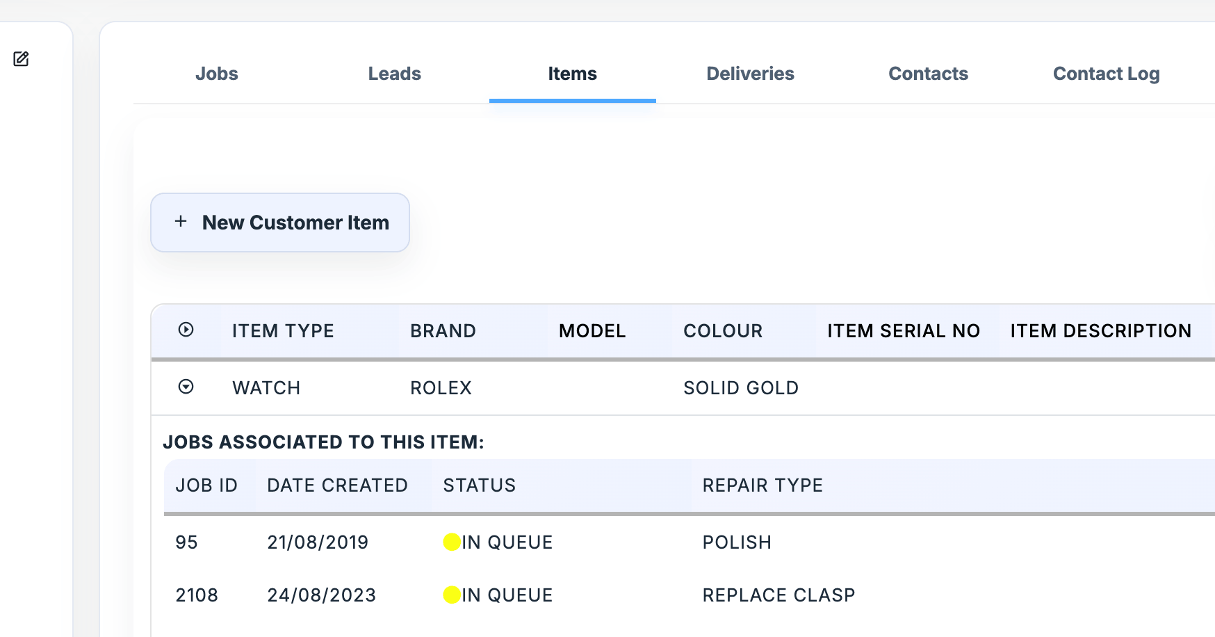 - Complete history of items booked in, previous repairs, leads, shipments and more