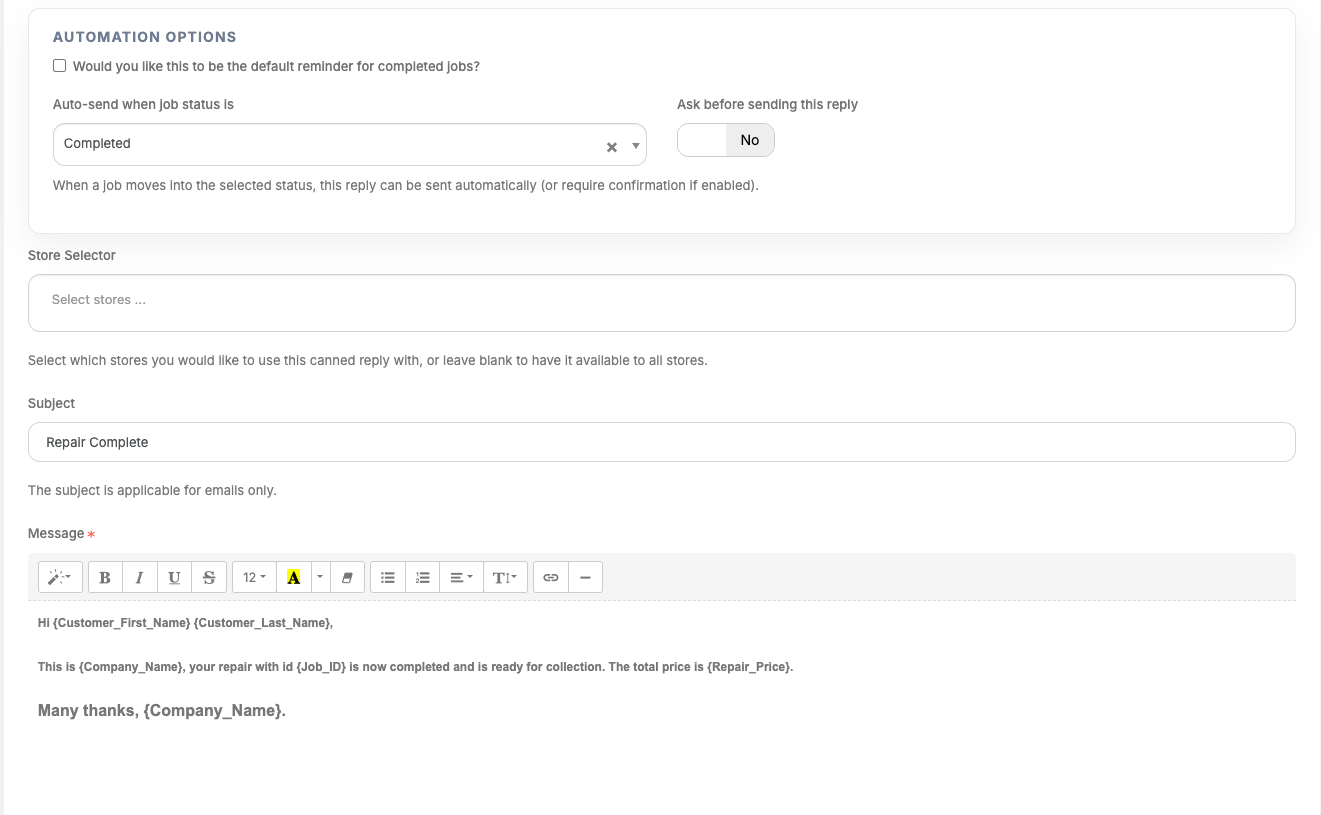 Create canned replies for email or SMS updates
