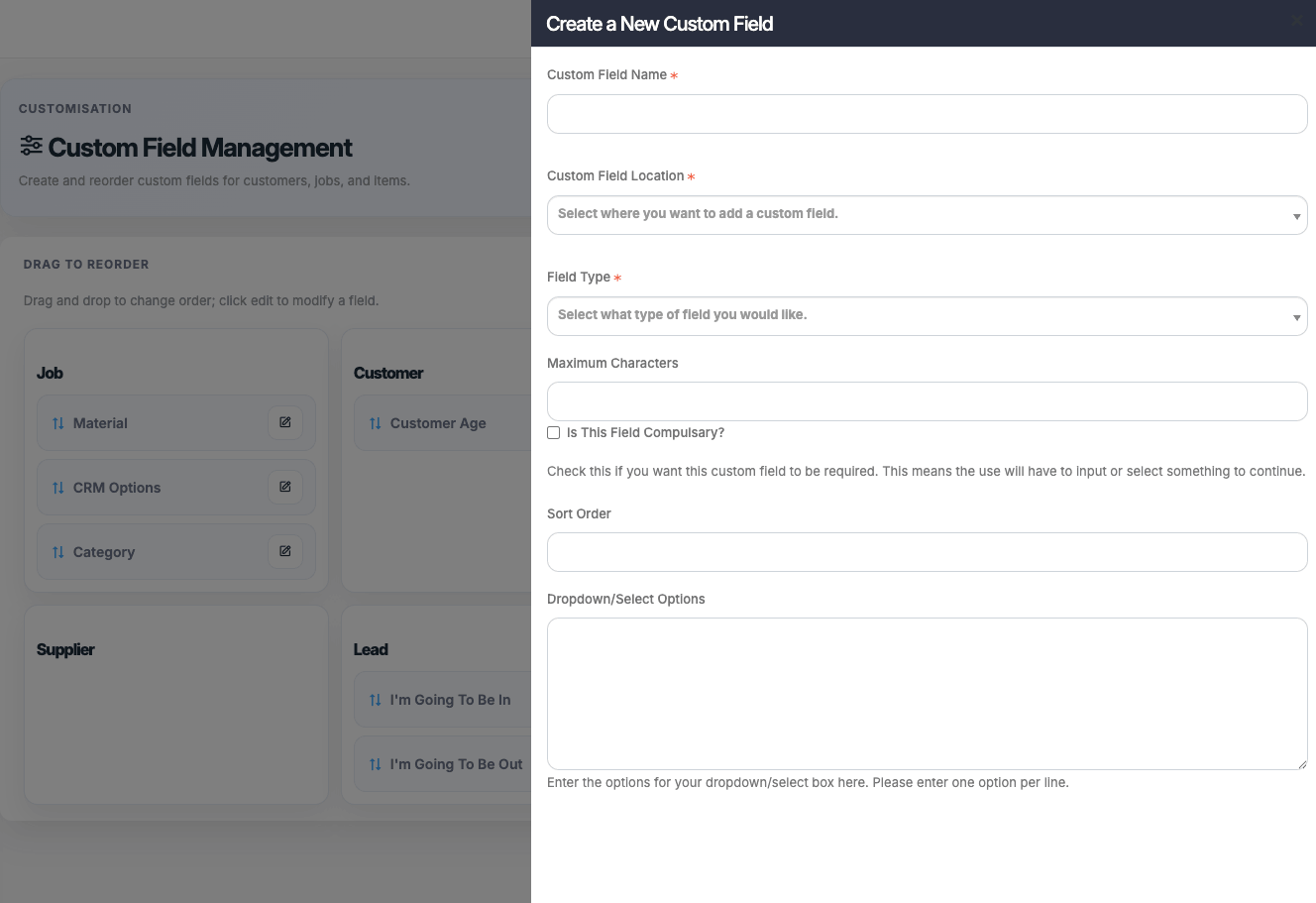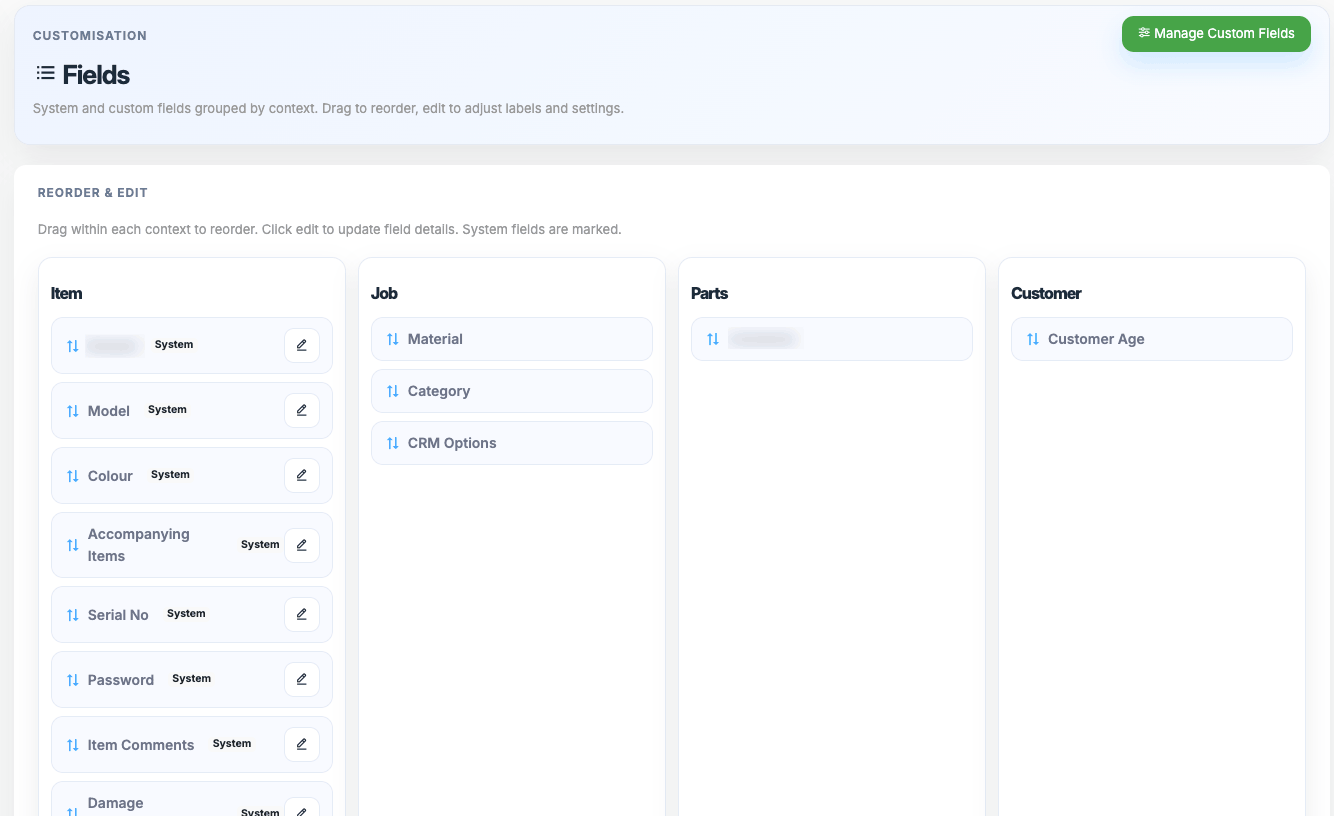 Not all fields are relevant to every business, so we let you adjust them to suit you.