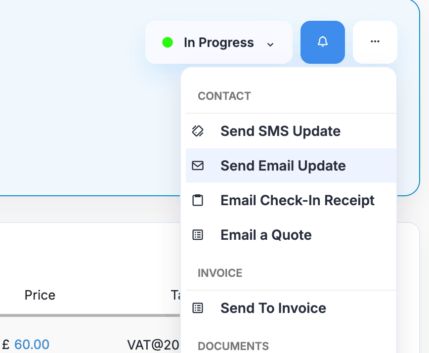 Send updates, get approvals, and follow up — directly from the job screen.