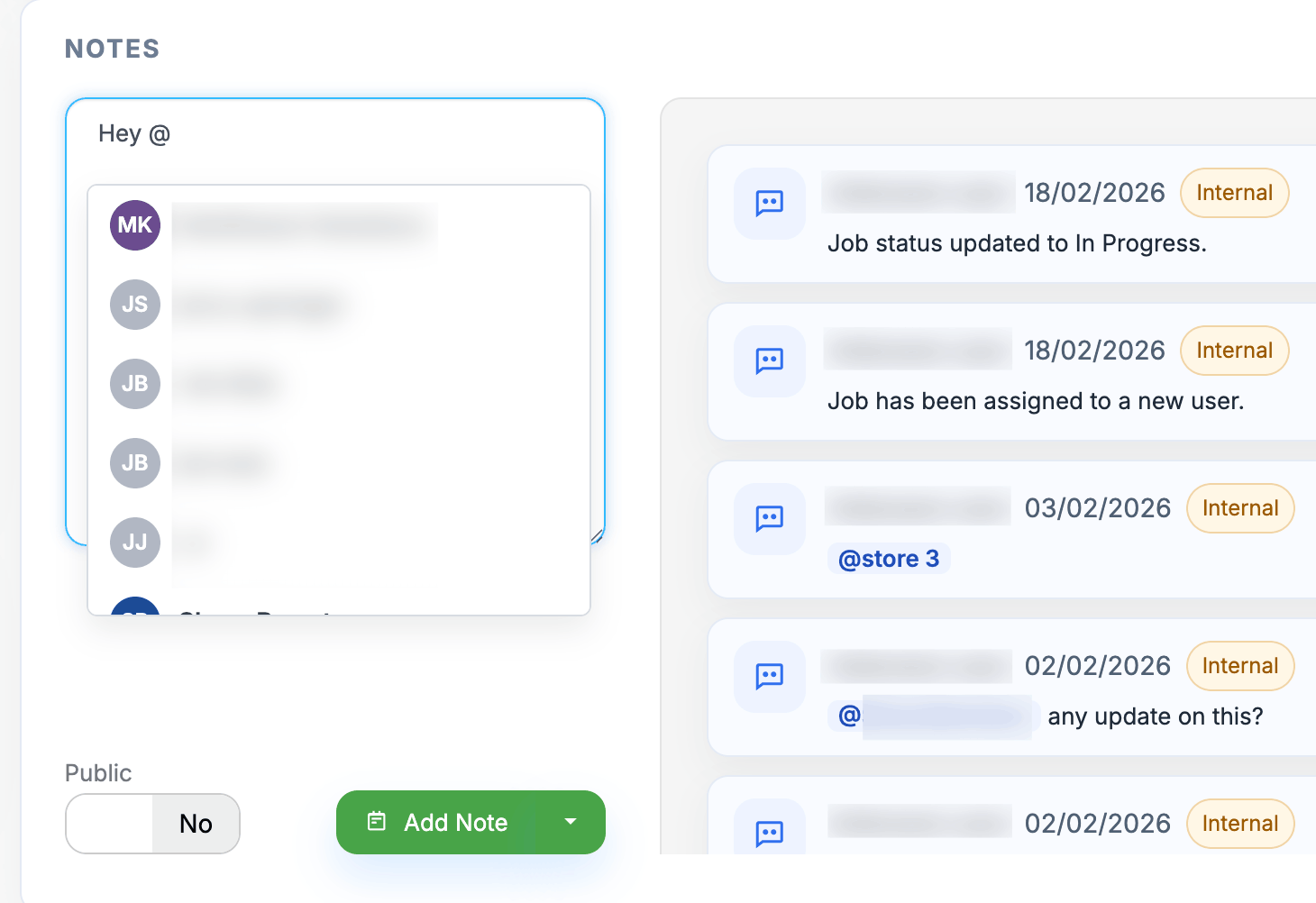 Technician comments, status flows, note tagging and more